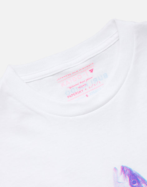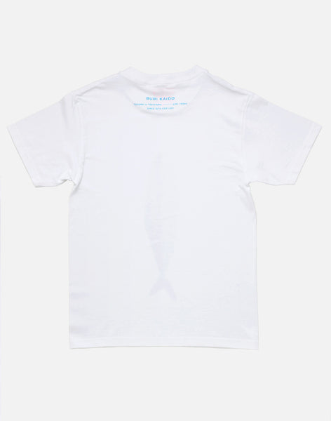 Buri (yellowtail) has since Edo times been delivered from Toyama Bay via the Buri -kaido Road to Hida Takayama. The voyage is a 90km walk. To this day Hida Takayama, despite being a mountain town eats more Buri per person than any other town in Japan leading some people to mistakenly believe there is an ocean in Hida. To commemorate this Old Japanese Highway, Papersky asked the talented design and art team O/S/C to help design a Buri Kaido T-shirt, or simply a Buri-T.