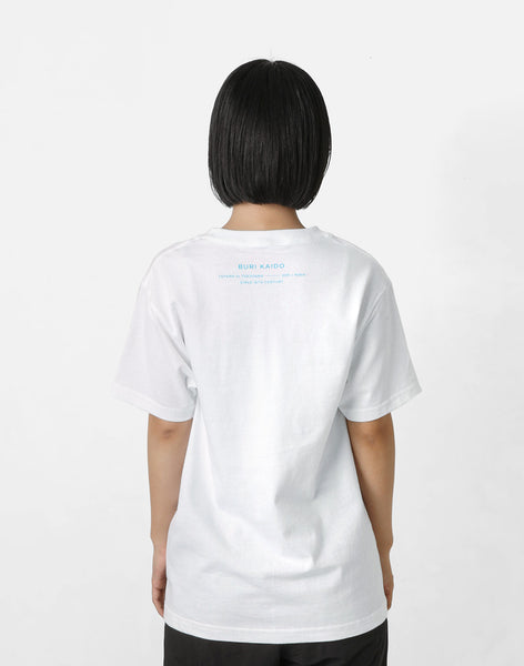 日本の旧街道「鰤街道(ぶりかいどう)」をテーマにしたTシャツ。フロントにはブリのイラスト、背面には街道にまつわる地名や距離などをデザインしています。
